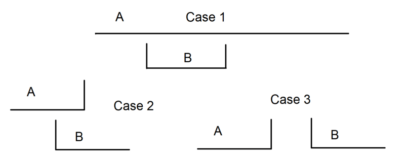 On the other end we had the duplicate data that shouldn’t be there. This was the organizing PCs fault, it would get confused and make a mistake. We still love it though. To handle this, we could have two cases of data overlap for the unintended duplicate data. You can think of two chunks of data, data A and data B with A starting before B, and how they can relate to each other. Case 1 would have A completely covering B and Case 2 would have A ending before B ends. Case 1 I could discard B, and with Case 2I would have to choose where to end A and start using B. I was more inclined to keep more of the longer stream of data, whether it was A or B, to avoid the fickleness of the organizer.